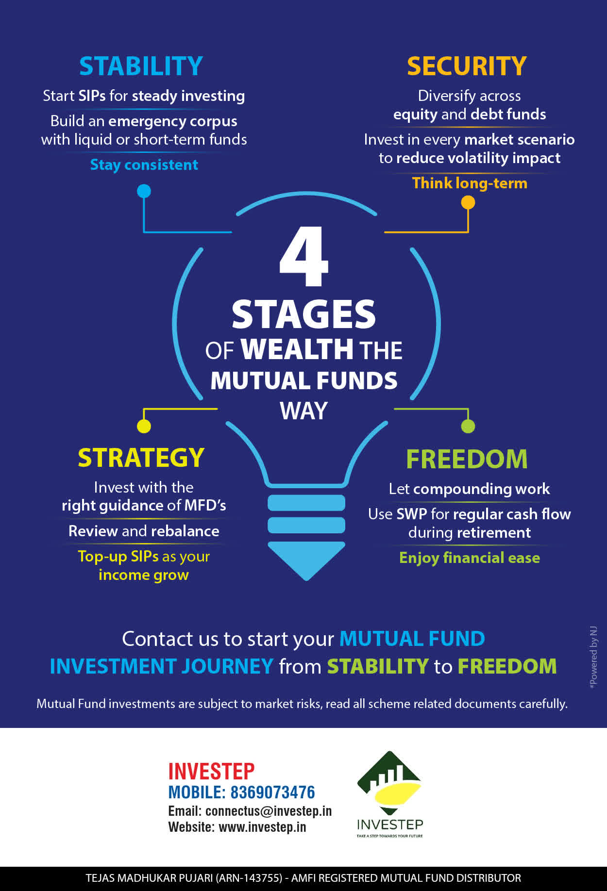 We offer our services through personal counsel with each of our clients after understanding their wealth distribution needs. Our approach is to enable our client's to understand their investments, have knowledge of investment products and that they make proper progress towards achieving their financial goals in life.
